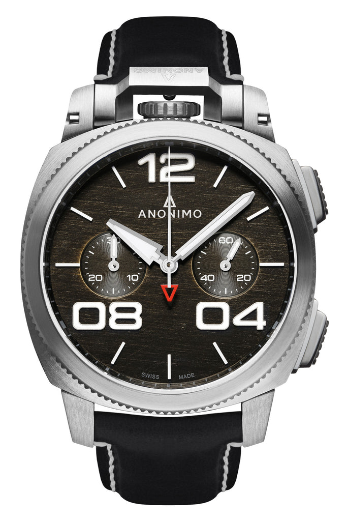 Swiss Made SW 300, 13 ¼'''' self-winding, personalized Anonimo oscillating weight with a bi-compax DD2035M chronograph module developed exclusively for Anonimo